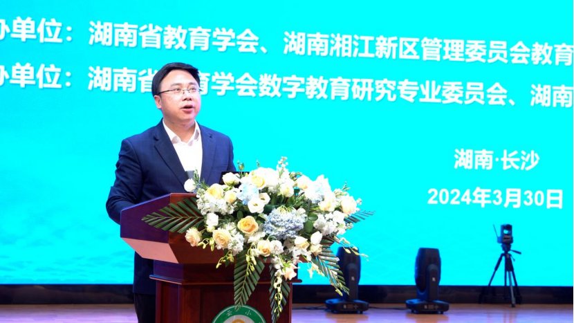 3月30日上午,由湖南科技大学、湖南省教育学会、湖南湘江新区管理委员会教育局联合主办的2024年湖南数字教育湘江论坛在举行。会议的主题是“数字化促进教育高质量发展”。