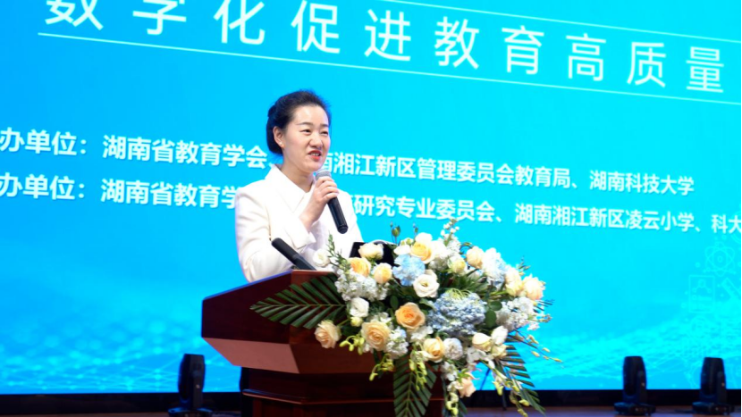 湖南湘江新区管理委员会教育局党组书记、局长宋晶在致辞中表示,湘江新区近年来以教育数字化为抓手,大力推动“人工智能+” 教育项目建设,持续优化基础设施、搭建数字基座、丰富教学资源,成果丰硕,走出了一条智慧教育赋能教育发展之路,为教育强区建设注入了澎湃动力。