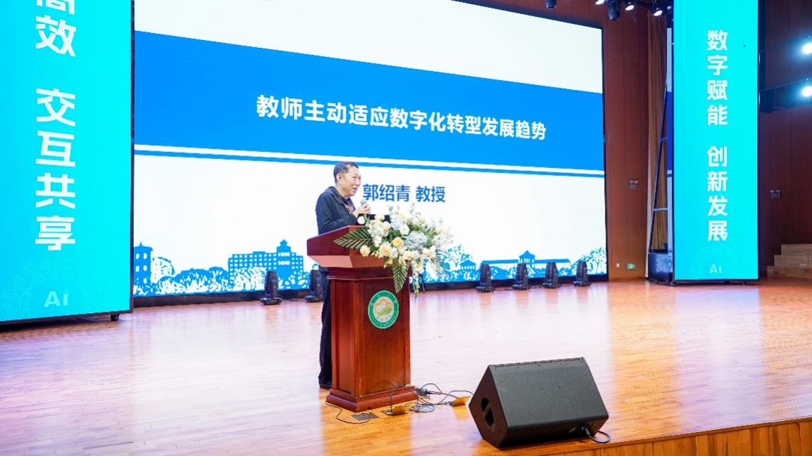 湖南省教育学会常务副会长兼秘书长郭荣学在致辞中指出,数字技术的引入对新时期教育工作者提出了更高挑战,需要政府管理部门、学校、社会各方共同努力,推动数字技术在教育领域的广泛应用。