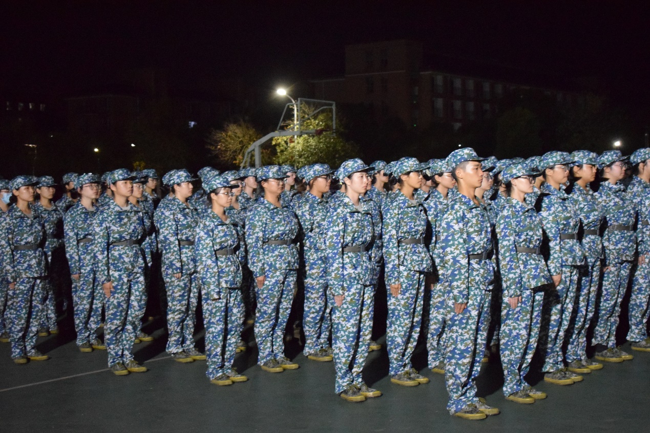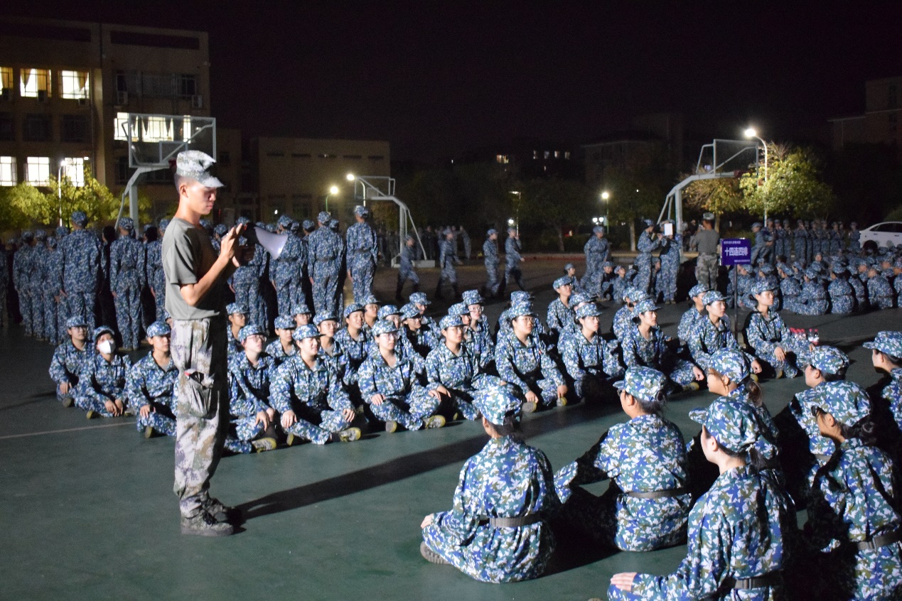 晚训时,虽然气温降低,但同学们依然全神贯注,严于律己。在训练间隙,严格的教官也变得亲切暖心,他们鼓励大家积极表演才艺,教大家唱军歌,场地上顿时歌声嘹亮,大家兴致高昂,欢呼声,口号声此起彼伏。