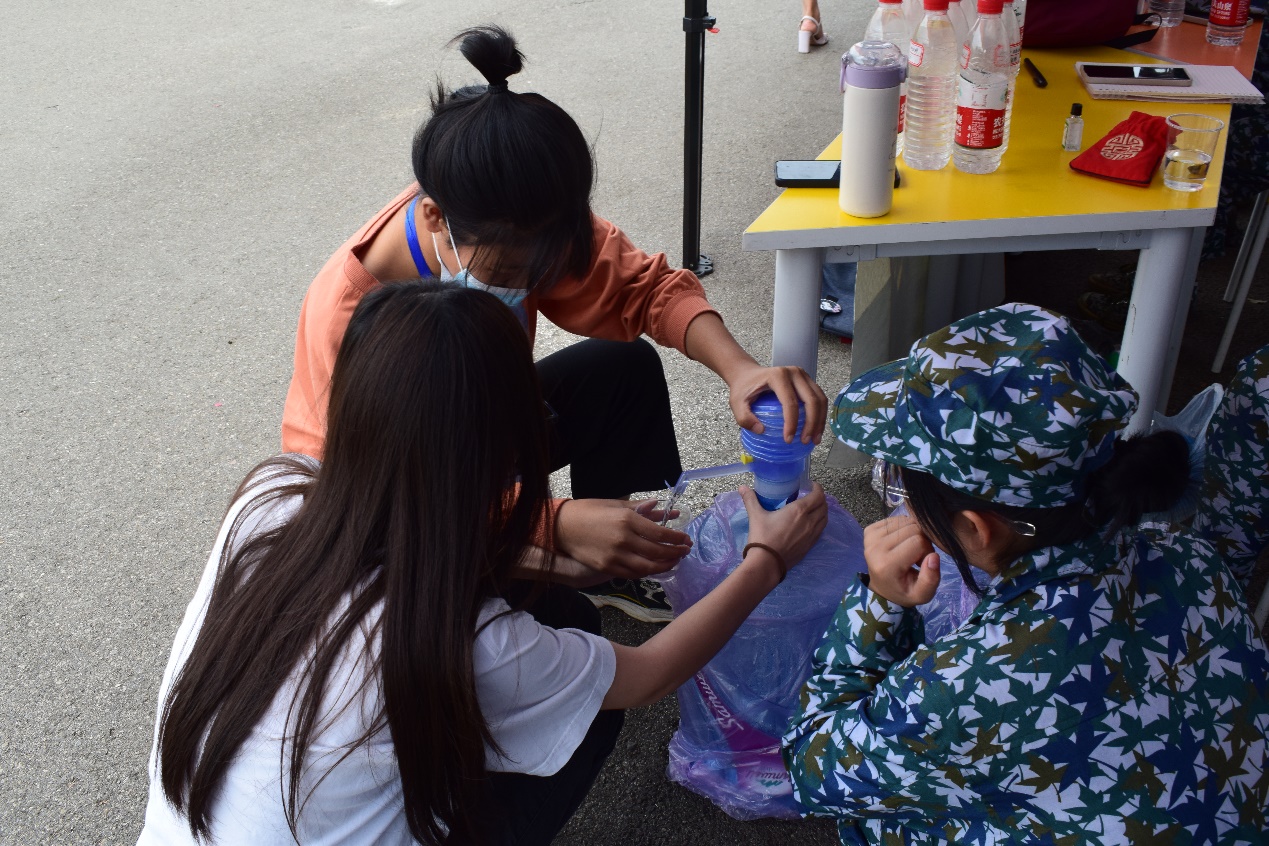 训练场地旁,学生会干部和助班们是同学们坚实的后盾。他们细心地关注着同学们的身体状况,及时为大家装满空水瓶,陪伴激励同学们战胜自我,督促大家认真锻炼,从晨光到暮色,与大家同向同行。