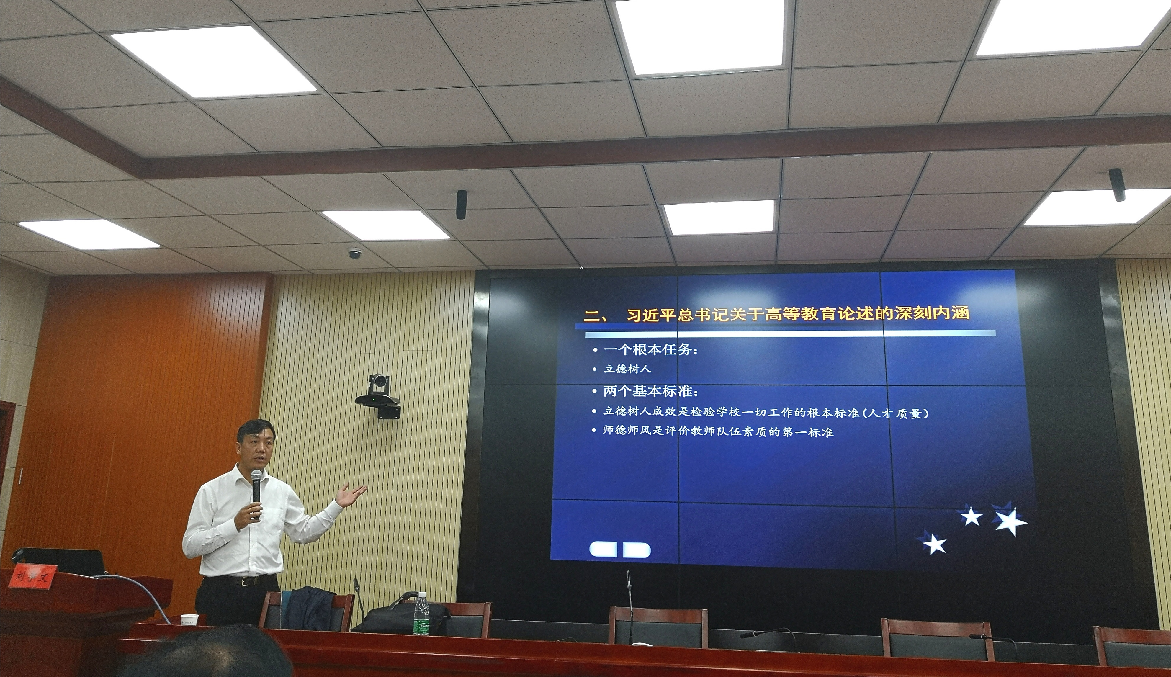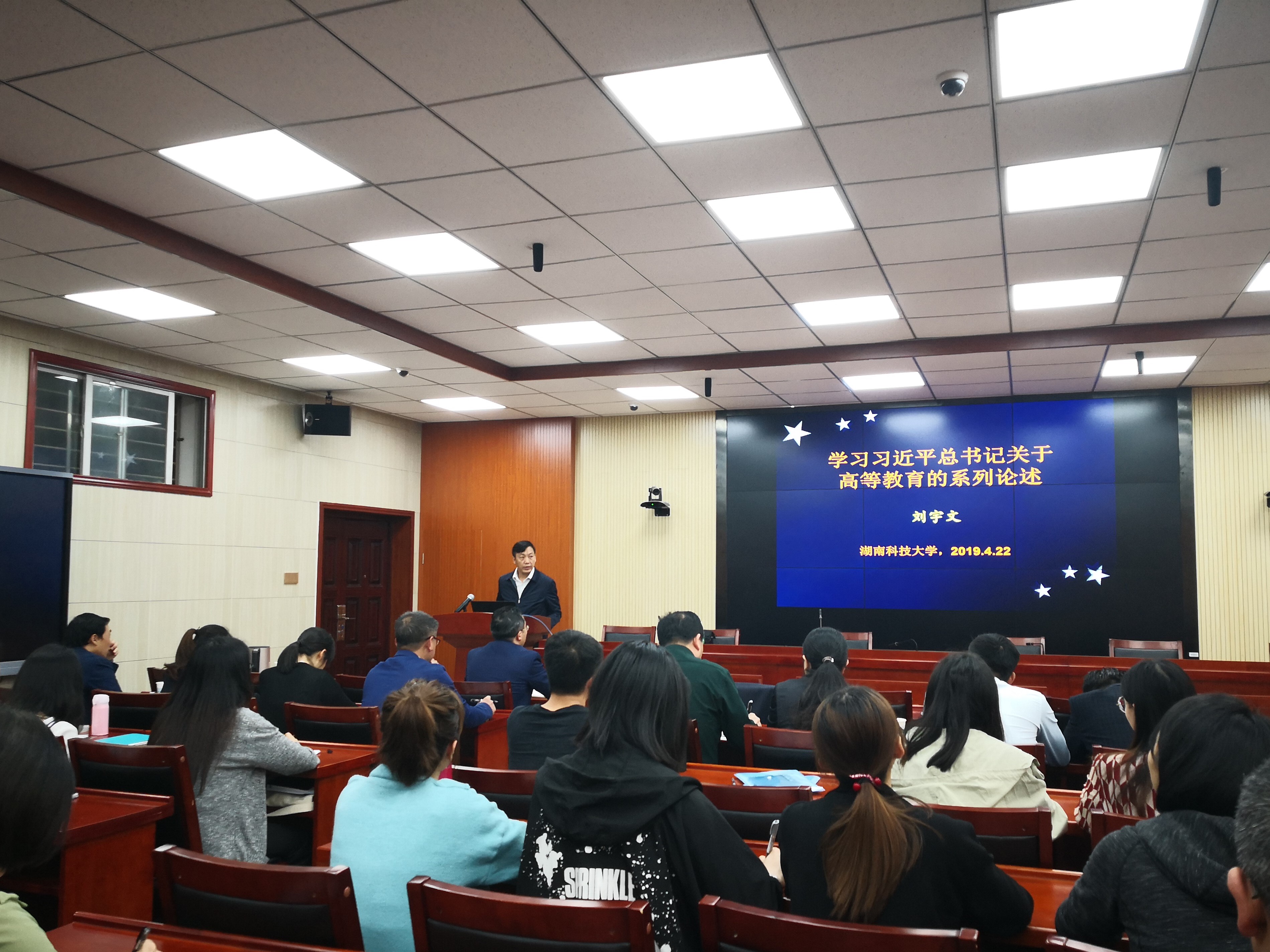 2019422日下午,校纪委书记刘宇文同志在第八教学楼308学术报告厅讲授主题为“学习习近平总书记关于高等教育的系列论述”的党课。校纪委监察处、教育学院教育学教工党支部和学生党支部党员参加学习。