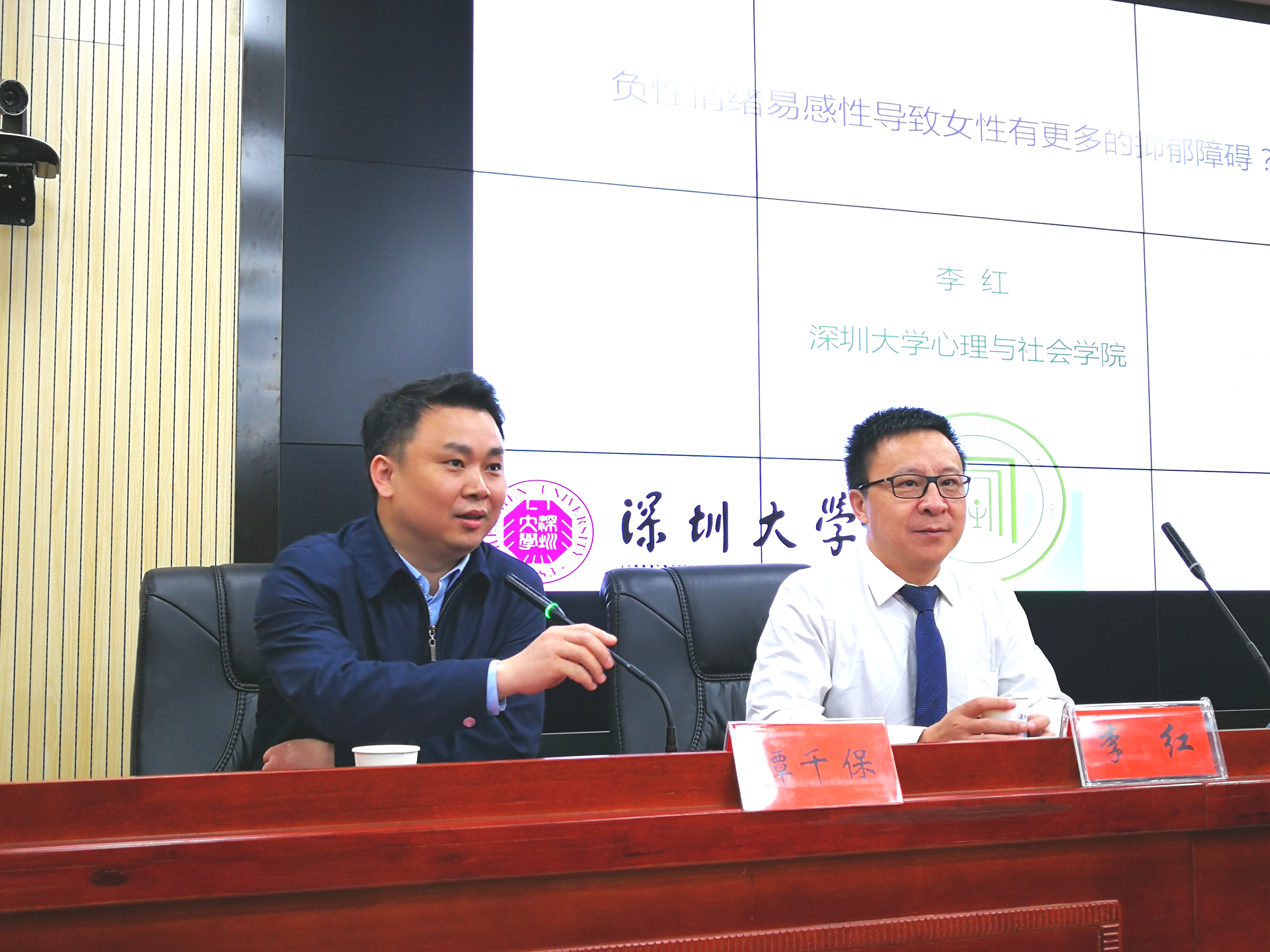 2018年4月13日下午,教育部长江学者特聘教授、深圳大学心理与社会学院院长李红教授做客“明湖教育论坛”,为我院师生带来了主题为“负性情绪易感性与女性心理健康”的精彩讲座。教育学院教师代表、研究生与本科生代表到场聆听。讲座由教育学院副院长谭千保主持。
