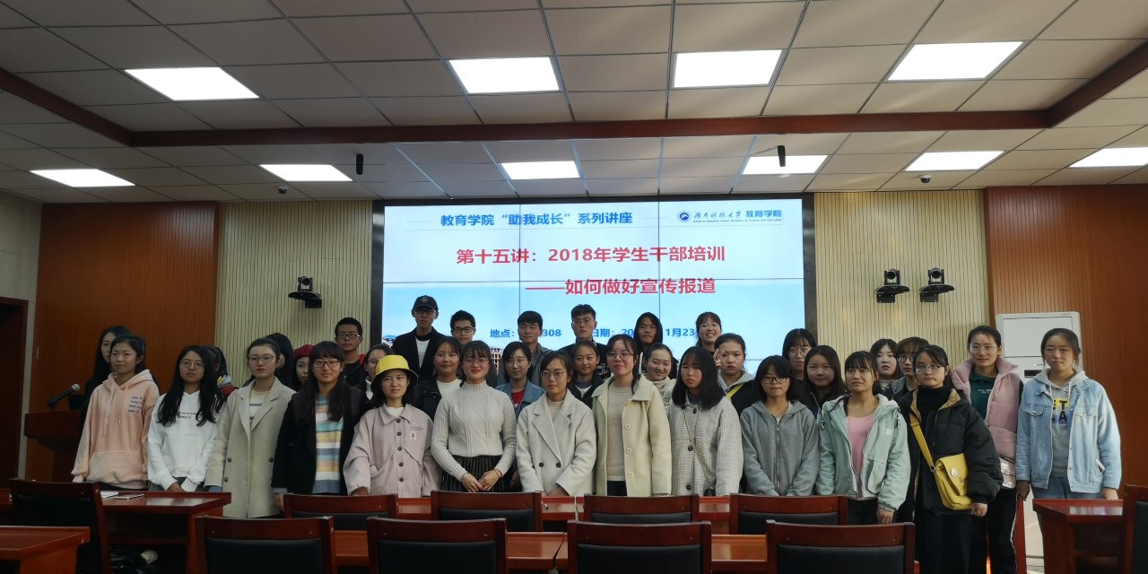 为提高各部门同学新闻稿写作的质量,进一步推动学院宣传报道工作的开展,2018年11月23日14:00,由教育学院团委学生会宣传网络部主办的新闻培训大会于第八教学楼308成功举行。出席会议的有教育学院党委副书记刘辉亚、团委学生会副主席曾根凤、第十九届团委学生会宣传编辑部部长蒋奔奔,学生会各部门成员参与本次大会。