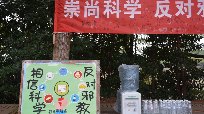 本次活动以海报,横幅,网络科普形式面向学生进行宣传,倡导学生反对邪教、破除迷信、崇尚科学、传播文明。大力推进校园反邪教宣传教育活动,切实增强教育学院反邪教意识。