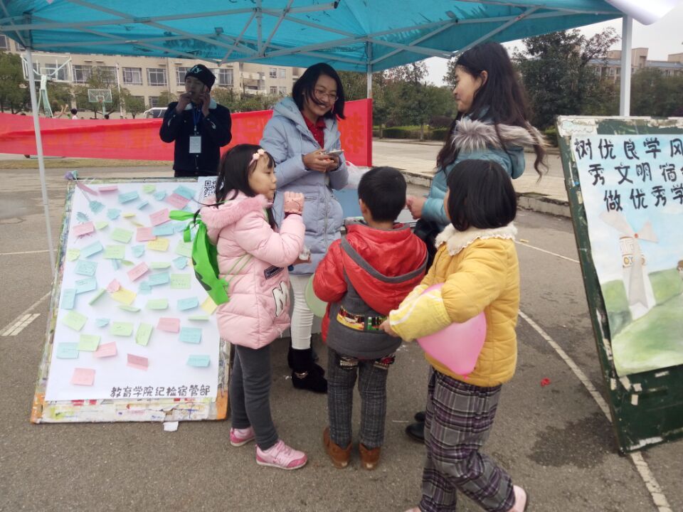 湖南388vip太阳集团第十届宿舍文化艺术节从2015年11月24日起开始展开,目前正火热进行中。12月6日,由教育学院团委学生会纪检宿管部主办,对外联络部、广告制作部和德育实践部协办的教育学院蒙牛杯第十届宿舍文化艺术节户外宣传活动在北校篮球场如期举行。活动场面反映热烈,学生们踊跃参与。