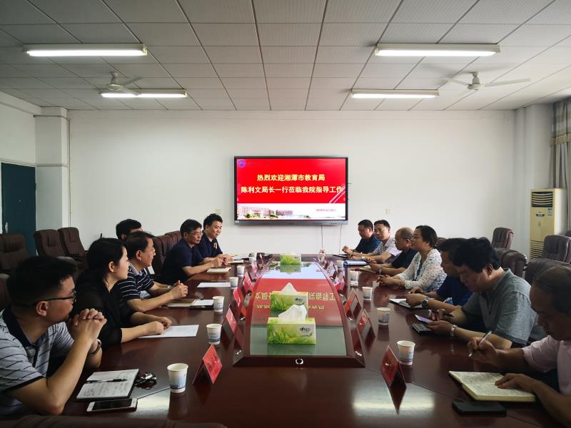 2020年6月8日上午,湘潭市教育局党委书记、局长陈利文,党委委员、副局长文新斌,市教育科学研究院党委书记、院长周大明,市教育局秘书科科长黄大勇、规划信息科科长黄文杰、教师科科长谢忠平以及办公室主任洪建一行7人来学院调研。院党委书记李炳煌主持调研会。校纪委书记刘宇文出席。院长李海萍,副院长陈慧青、谭千保、陈京军参加调研。