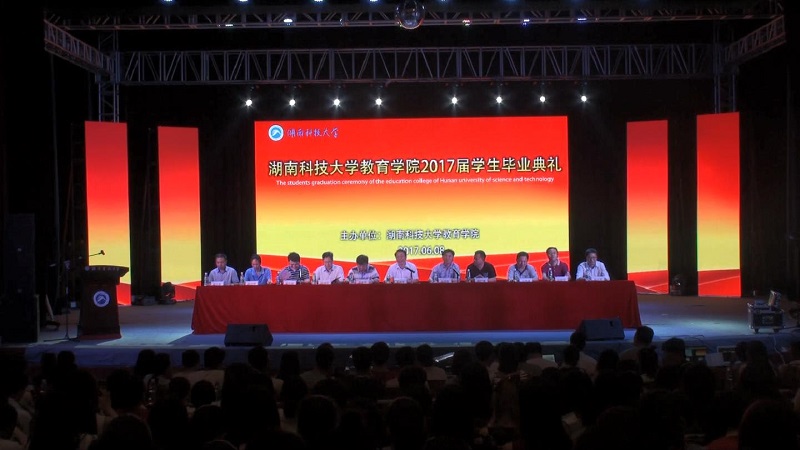 2017年6月8日16点30分湖南科技大学2017届毕业典礼在俱乐部隆重举行。莅临本次活动的嘉宾有教育学院院长李海萍教授、教育学院党委书记李炳煌教授、教育学院原党委书记,现校社科联副主席谭建平教授、教育学院原副院长,现教育科学研究院常务副院长周险峰教授、教育学院原副院长陈坤华教授、教育学院原党委副书记王伟清教授、教育学院副院长谭千保老师、教育学院党委副书记刘辉亚老师,以及教育技术系主任杨世伟老师、应用心理学系主任陈京军老师、教育学系代理主任夏永庚老师。