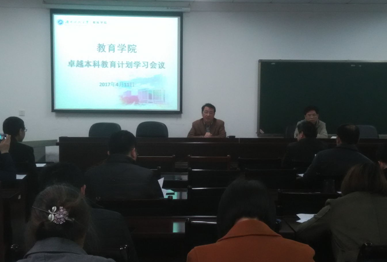 4月11日下午,教育学院组织全体教职员工在八教408会议室学习学校下发的《关于实施卓越本科教育计划的意见》。本次培训会由学院党委书记李炳煌主持,院长李海萍负责解读学校文件精神。