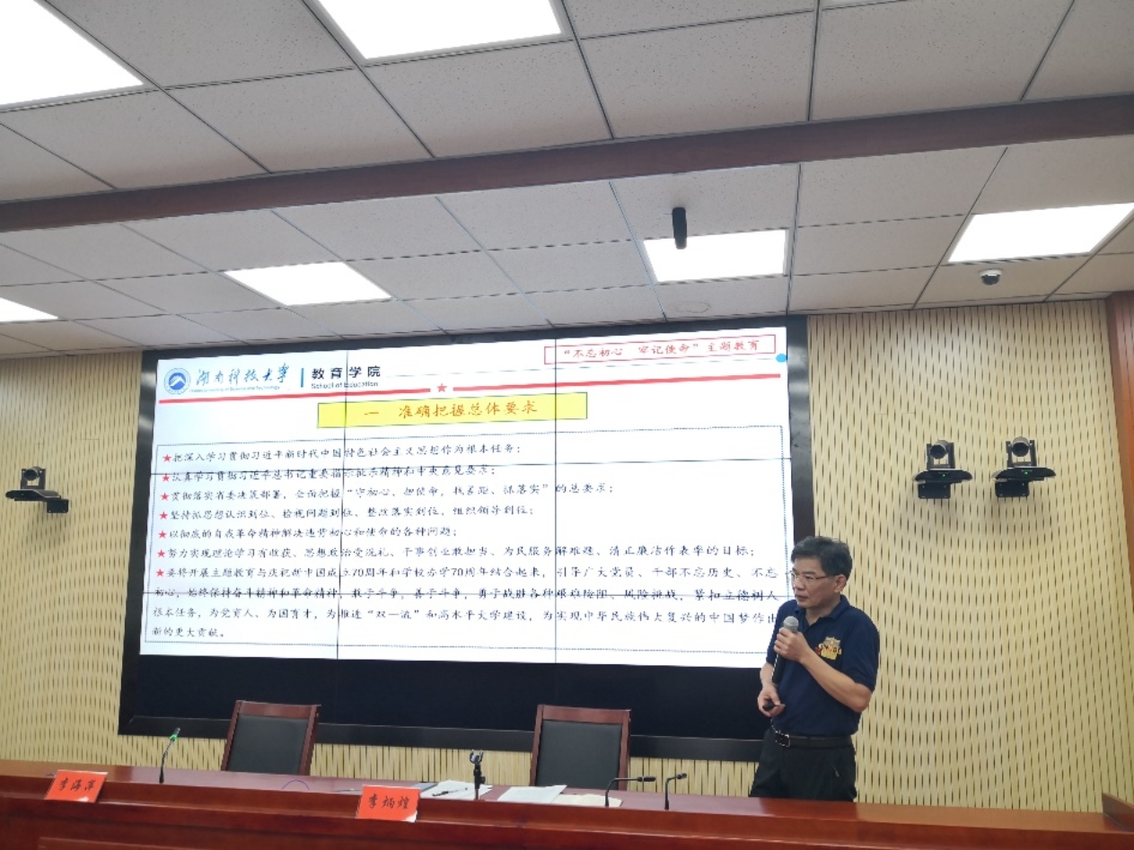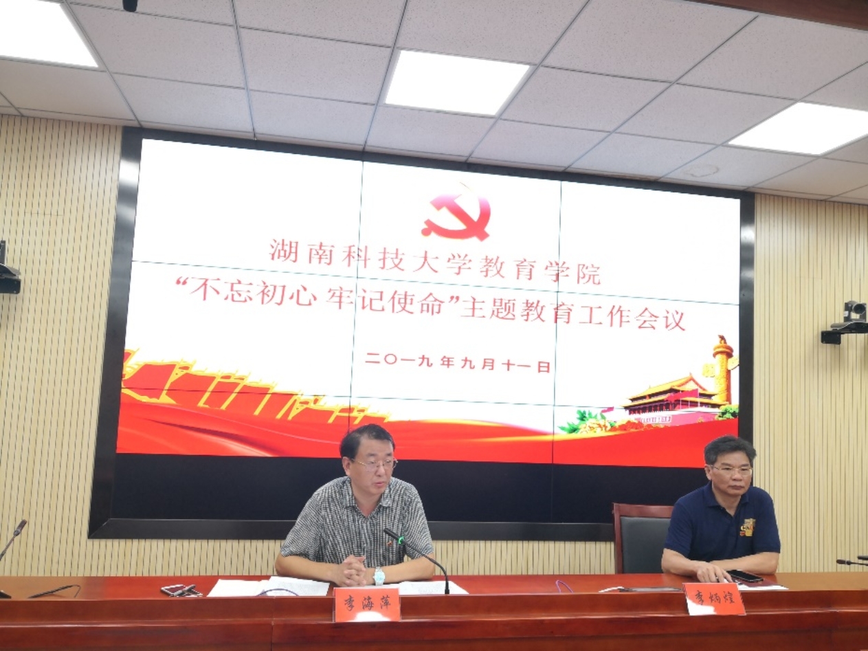 2019年9月11日晚,教育学院“不忘初心、牢记使命”主题教育工作会议在第八教学楼308会议室举行,全院全体教职工党员、本科生党员和研究生党员与会。院党委书记李炳煌传达学校“不忘初心、牢记使命”主题教育工作会议精神,院长李海萍主持会议。