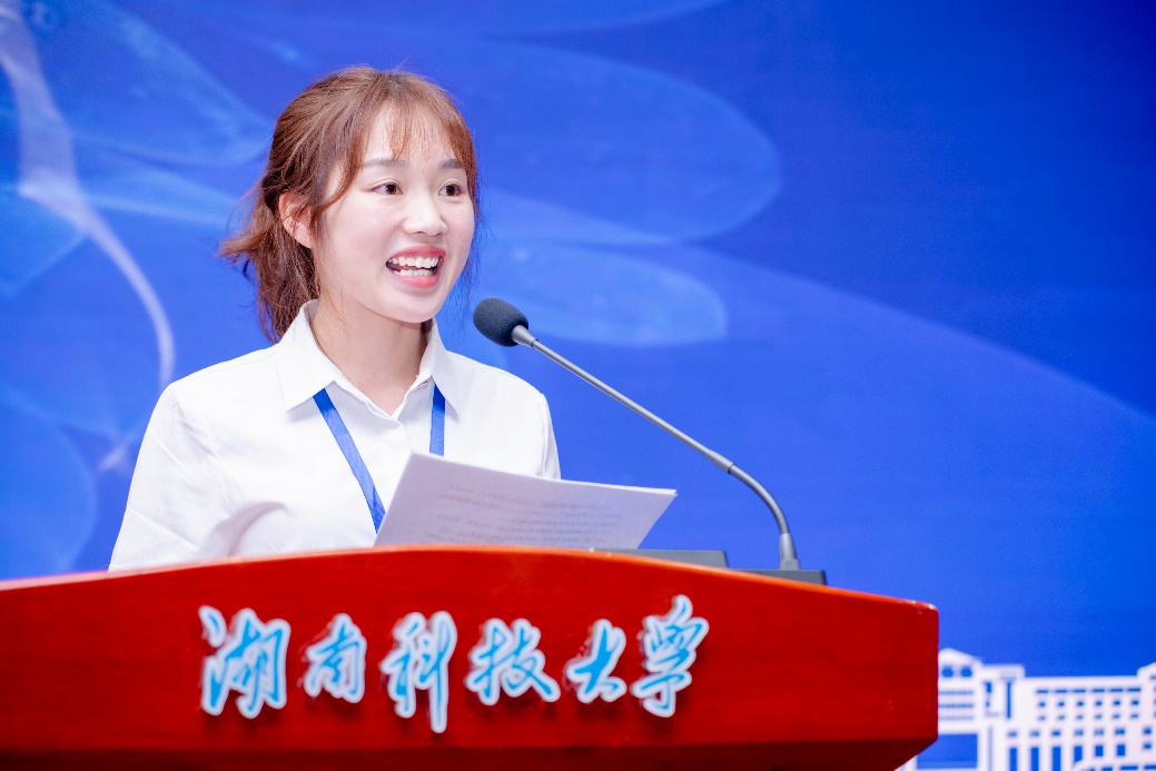 武冈市第三中学钟慧老师作为学员代表发言,她表示,在培训期间,会提高思想认识,加强学习;会沉下心来,专心听讲;会相互交流,共同提高;会学以致用,用先进的教育理念指导教育教学工作;会自觉遵守培训管理制度,服从学校的各项安排。