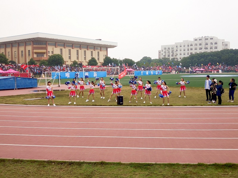 在运动员为学院争光拼搏时,我院的啦啦队也积极准备着,她们身穿短袖短裙,整齐划一的动作,洋溢着满满的热情,她们为运动员们加油助威,动作铿锵有力,体现了教育学院良好的精神风貌。