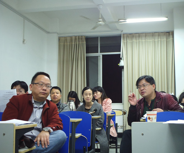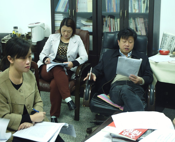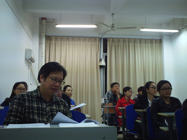 2014年11月6日晚上19:00,教育学院12级学术学位研究生论文中期检查评审会在八教603东西两个教室以及教育学院党委书记办公室同时进行。出席评审会的导师共有三组,每组邀请具有硕士生导师资格的专家教授指导检查工作,同时派一名同学做记录工作。部分2014级、2013级的研究生也前来聆听了此次评审会。