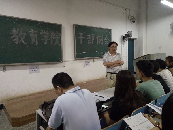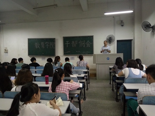7月1日18时,教育学院第十八届团委学生会首次干部例会于第八教学楼1-4号教室准时开始。在既是建党节又是香港回归纪念日的这个具有重大意义的时刻,我院党委副书记王伟清、学工办主任李涛、第十八届团委学生会各成员及学院各班班干部齐聚指定地点,共同分享这次干部例会暨新一届学生会成员见面会的相关细则及他们的共事情感。
