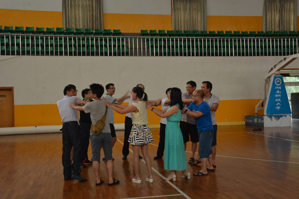 7月4日下午,“国培计划(2016)”湖南省高中通用技术骨干教师培训班于北校体育馆内首次举办团体文娱活动,活动秉着丰富学员生活,增强团体协作能力的宗旨,分四个项目进行团体比赛。