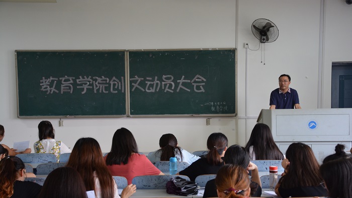 教育学院2017年9月8日13:00在第八教学楼3-2教室举办了创文工作安排会议,会议由学工办辅导老师尹琼芳老师主持,教育学院党委副书记刘辉亚书记发表相关讲话,教育学院全体寝室长参加。