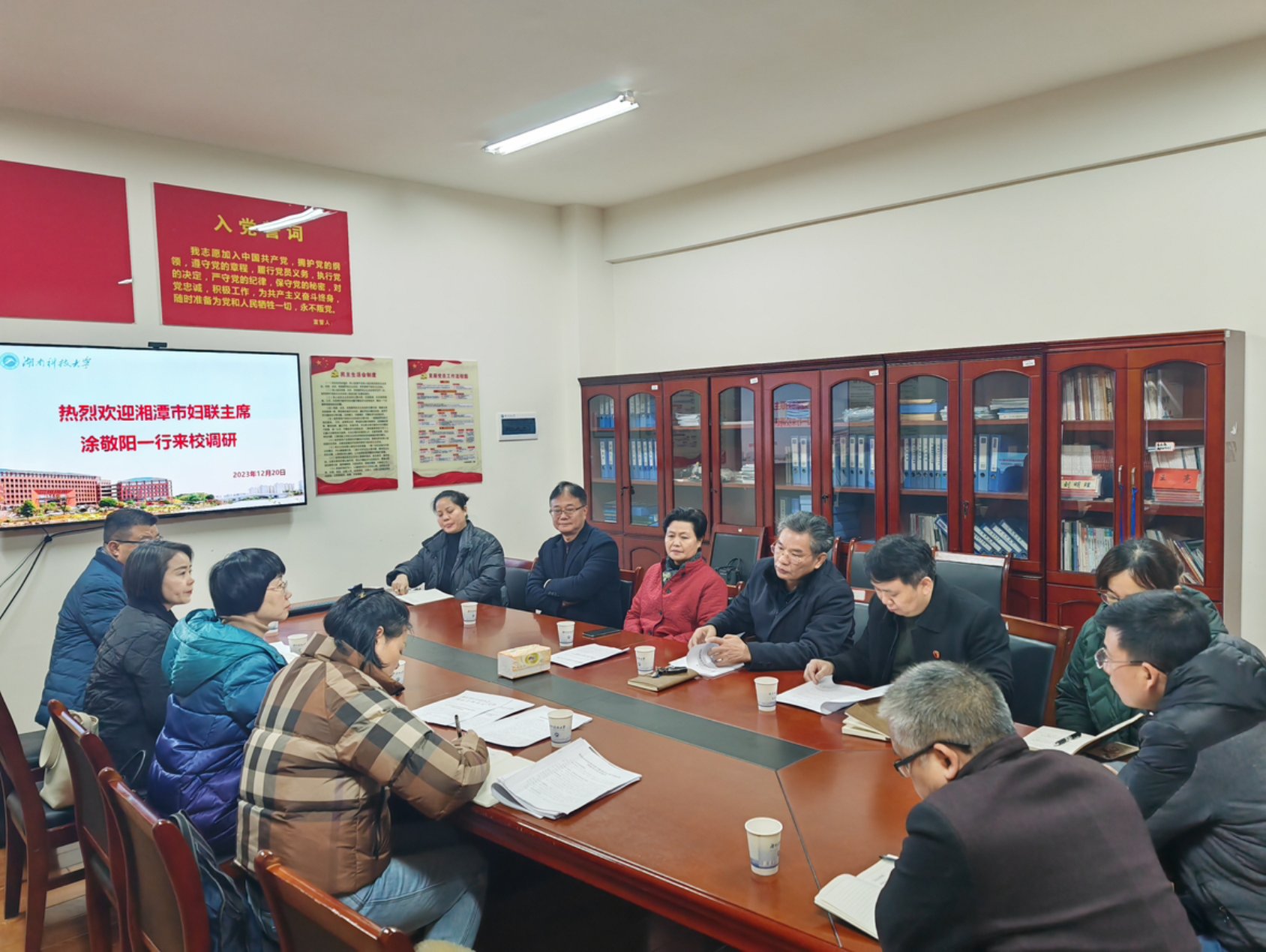 为加强家庭教育校地合作,推动湘潭市家庭教育事业发展,12月20日,湘潭市妇联主席涂敬阳一行专程来我校调研,在敏行楼A231召开了座谈会,校党委委员、副校长李琳,校工会常务副主席何正良,专职副主席刘崇莲,教育学院院长谭千保,党委书记李炳煌,党委副书记文红梅,系主任代表出席。
