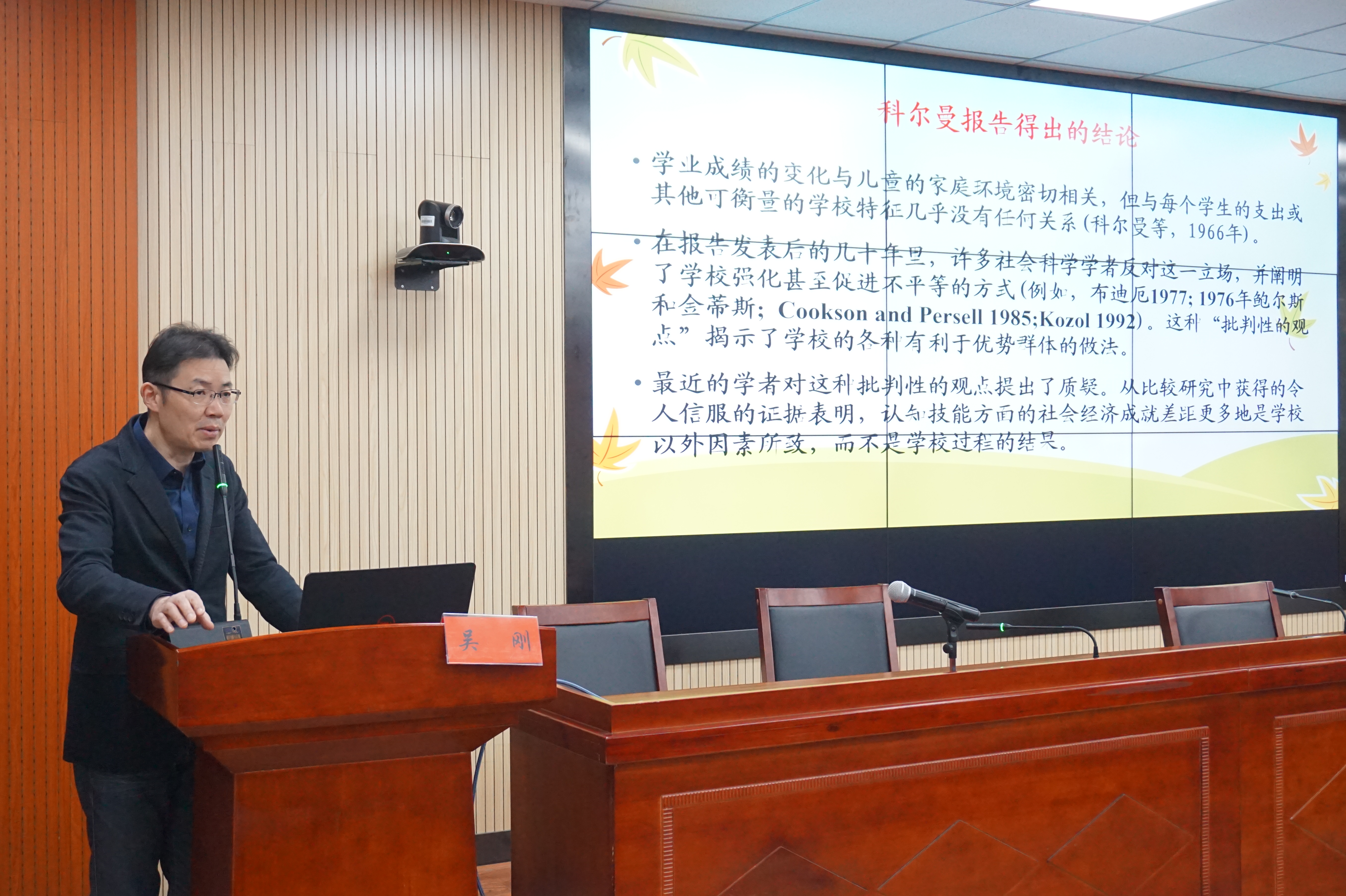 2019414日下午,华东师范大学博士生导师吴刚教授做客“明湖教育论坛”,为我院师生带来题为“教育社会学视野下的教育平等困境”的学术报告。报告会由教育学院院长李海萍主持。
