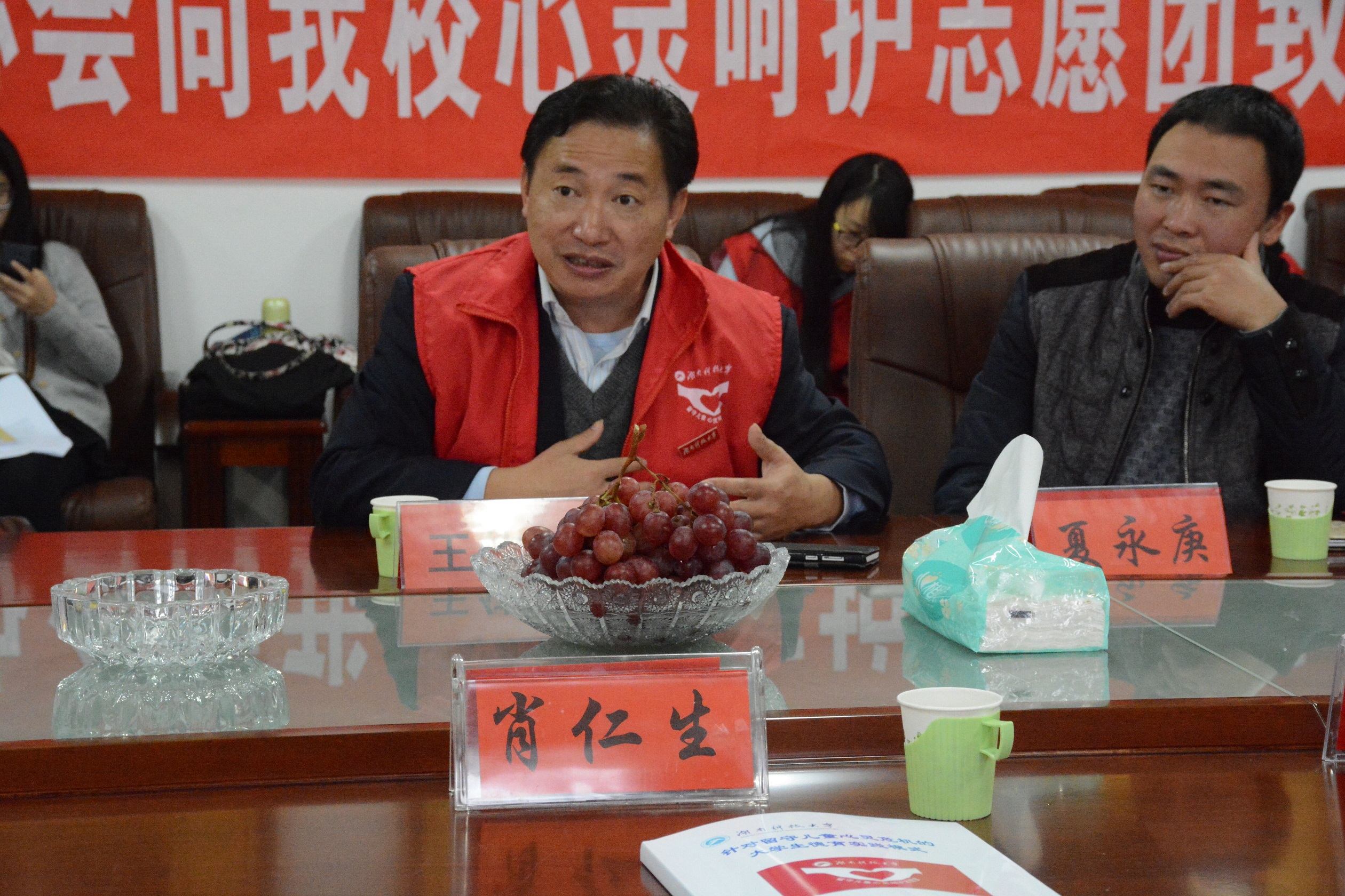 仪式接近尾声,心灵呵护志愿团指导老师王伟清副书记总结发言,王伟清副书记对在场专家学者的宝贵建议表示感谢,并提出了志愿团今后的发展方向:“开创一种新的工作模式,引起中央高层的重视,使志愿行为成为一种政府行为,努力克服现有的平台资源局限,同时充分发挥教育科学优势,将工作全面铺展开来”。