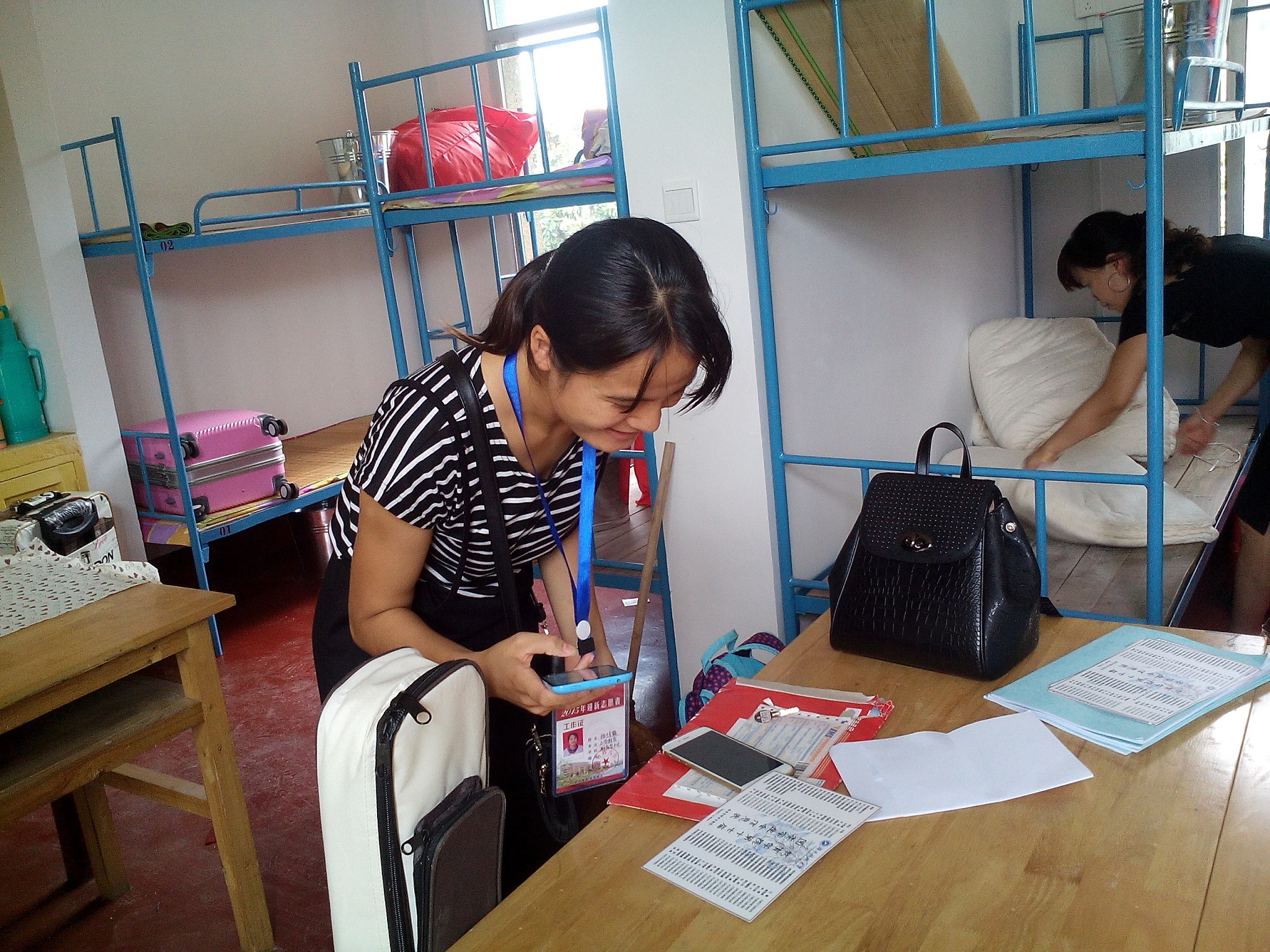 9月10日左右,已有一部分教育新生陆续抵达学校,迎新志愿者们承担起了接新生、帮助新生入住的责任。在此之前,为了更好地为新生服务,志愿者们统一进行了志愿者培训大会,了解新生入学的各种事项。相比以往,今年的迎新志愿者有了更多的工作要做,志愿者一对二、一对四等服务也更加贴心周到,从新生到达时全程负责新生的入住以及手续办理等。与志愿者同样,学院的领导老师也没有闲着,奔走在各个宿舍区为新生解答疑难问题。11日下午,15级新生辅导员尹琼芳老师就碰上了许多需要帮助的同学,15级应心1班的凡梦婷同学寝室的枕套少了两个而不能及时迎新系统里面报道,尹老师知道情况后立马打电话给负责这方面的人,要求尽快为凡梦婷同学备齐所缺物品,就这样,在老师的辛苦帮助下,15级新生报道的许多困难被一一解决。另外,还有许多学生会工作人员,助班们也忙碌在迎新一线。13级应用心理学2班易煌辉同学是15级应心1班的助班,作为助班,她要时刻查看群里面的消息,及时接听各种电话,不断的下寝、跑宿舍,看看新生报到是否顺利,是否安全抵达学校,同时,作为一名15级新生的学姐,她还要向新生解答新生的各种困惑。就如所有的助班一样,他们是学长学姐,同时也是一个关心学弟学妹的大哥哥大姐姐。