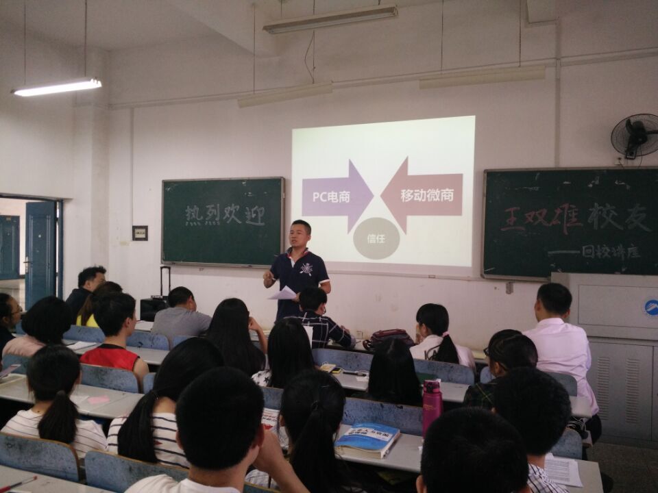 2015年10月20日14点30分,第八教学楼3-4教室隆重举行主题为《互联网时代的创业与就业》的讲座,校友资源部请来了优秀校友、心理营销教父、向上企业董事长、周六微商网校联合创办人王双雄面向教育学院应用心理学专业和相关兴趣同学进行现场讲座。王双雄毕业于湖南388vip太阳集团应用心理学专业,曾为学院学生会主席,学习成绩优异,现于微商行业成绩佼佼。教育学院王伟清副书记亲临现场为同学们隆重介绍主讲人,谭千保老师全程参与并作了总结陈词。