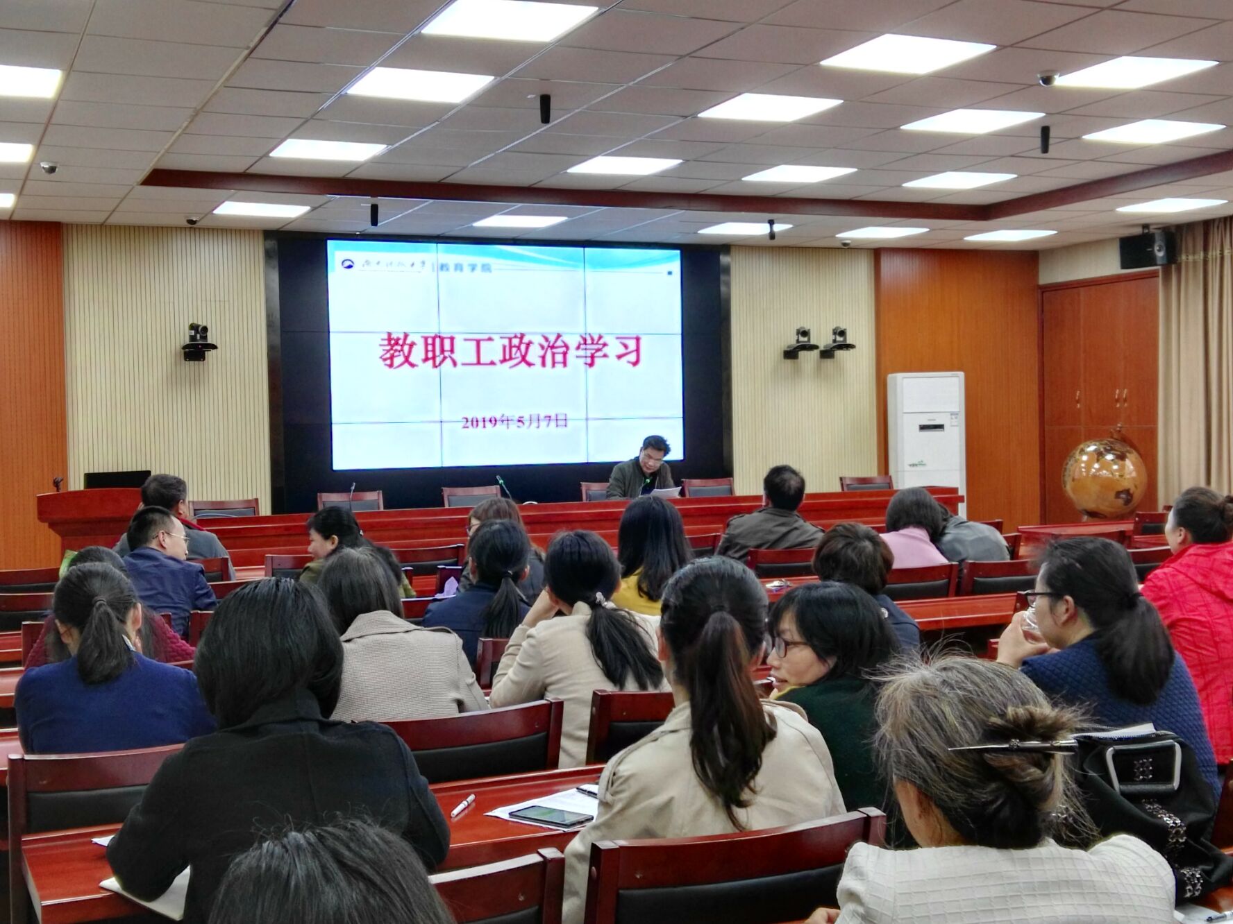 2019年57日下午,教育学院组织全体教职工在第八教学楼308会议室学习2018年全国教育工作会议精神,《中国教育现代化2035》以及《加快推进教育现代化实施方案(20182022年)》要点,《湖南科技大学“双一流”计划实施方案》(科大政发[2018]63号文件)。会议由院党委书记李炳煌主持。