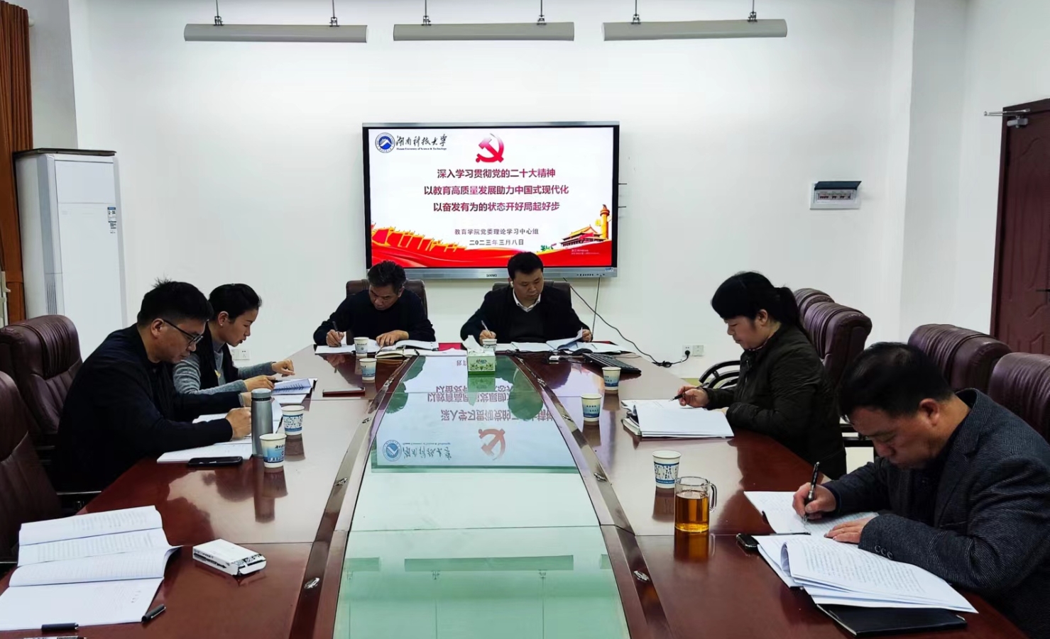 与会人员深入研读了《习近平在学习贯彻党的二十大精神研讨班开班式上发表重要讲话强调 正确理解和大力推进中国式现代化》、《加快建设高质量教育体系 办好人民满意的教育——2023年全国教育工作会议召开》、《秦国文在 2023 年全省教育工作会议上强调:把握教育客观规律,加快建设教育强省》、《湖南科技大学2023年工作要点》等内容,并自学观看了《生命重于泰山》安全专题警示片。