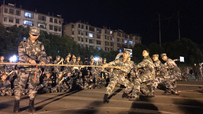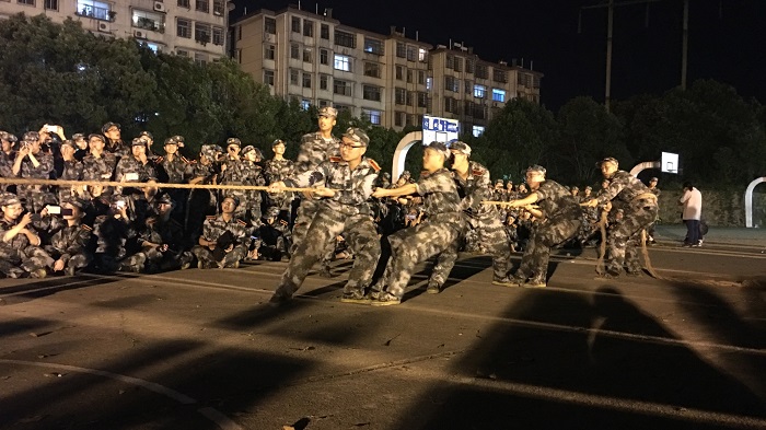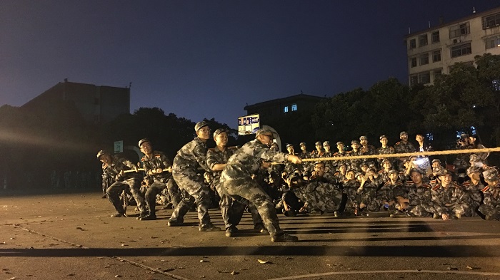 今晚,教育学院全体新生在军训场地举行了别开生面的拔河比赛,三轮比拼下来,最终四营五连四排夺冠,该排每位同学都获得了奖励。现场气氛非常热烈,还吸引其他学院的同学们前来围观。