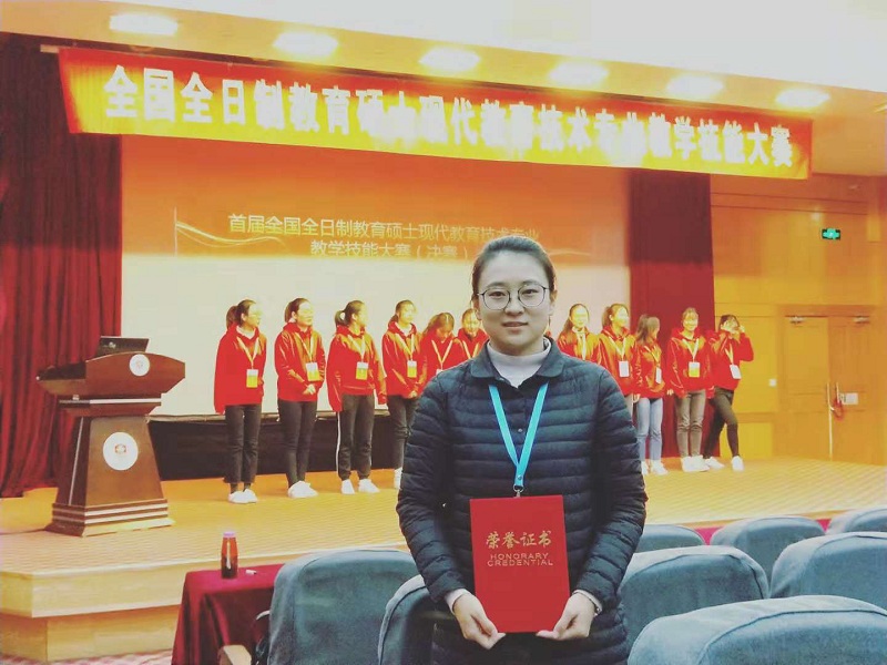 近日,首届全国全日制教育硕士现代教育技术专业教学技能大赛(决赛)在江苏师范大学落下帷幕。我院2017级全日制现代教育技术专业胡美艳同学在比赛中表现优异,荣获三等奖。