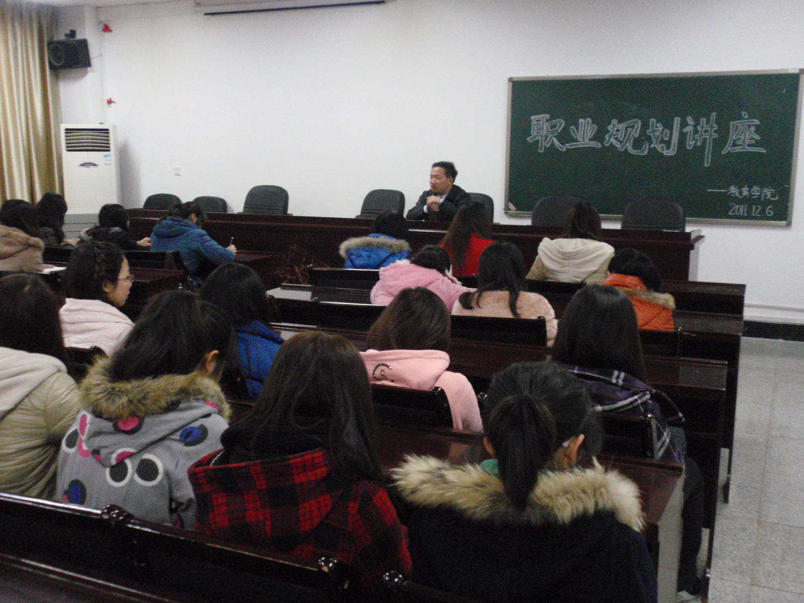 为了增强新生发展的目的性和计划性,为未来的就业和事业发展做好准备,教育学院于12月6日下午四点半在八教408室成功举办职业规划讲座。本次讲座的主讲人是我院党委副书记王伟清老师,11级全体研究生与会。